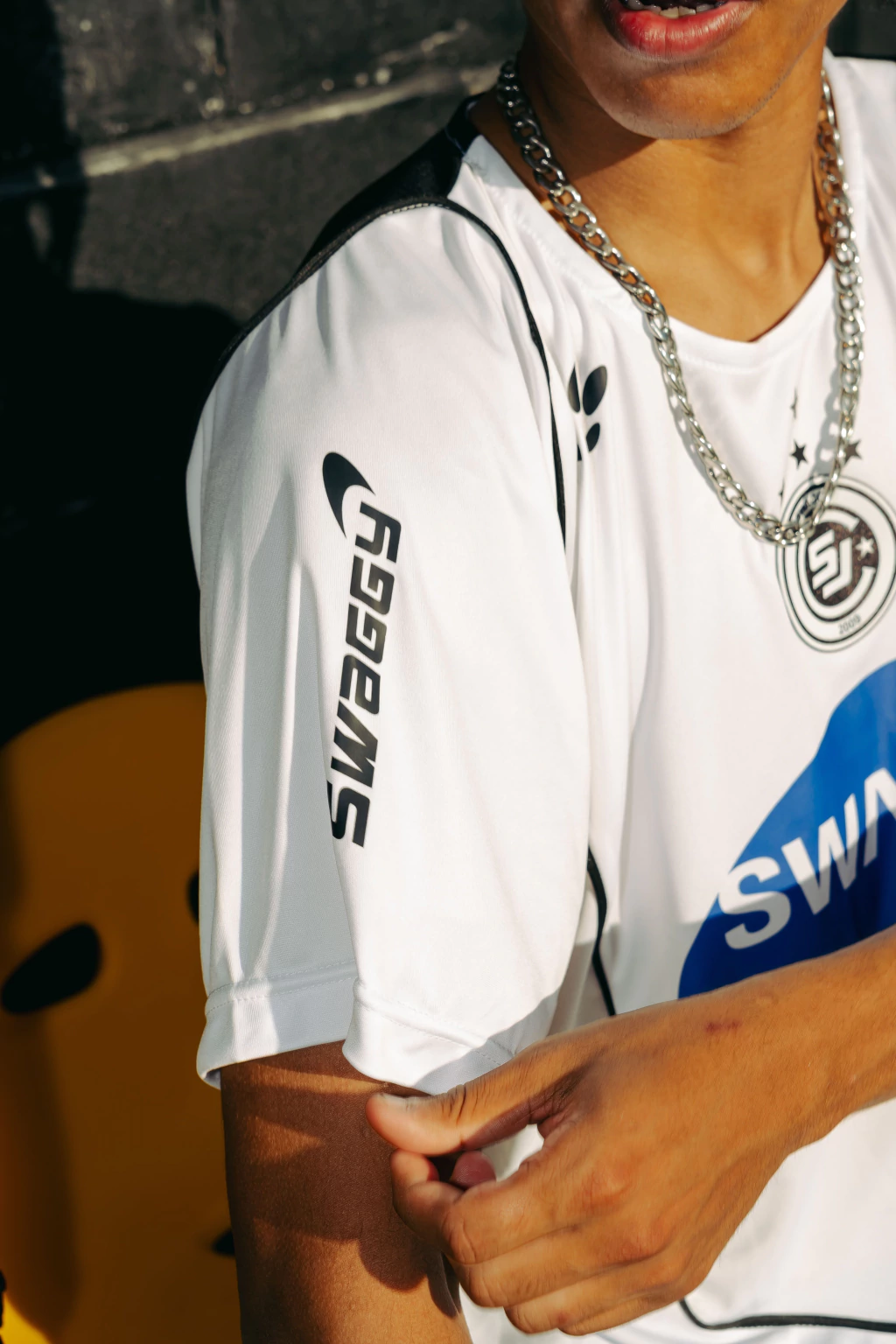 Continuando con los pasos de Carlitos antes de convertirse en la estrella del fútbol europeo, llegó al club de Brasil en donde conquistó otra nación de latino america. Cuando me dicen Swaggy, si podrías irte a Estados Unidos por que no lo haces? Por que primero quiero conquistar mi territorio y pegarla aca, soy argentino y latino, lo que más me representa es el hambre de gloria disfrutandolo con los tuyos. Ya tendré tiempo de expandirme y cumplir mis sueños maximalistas en todo el mundo. También se incluyó la publicidad de Mclaren en las mangas para hacer referencia al hincha más famoso del mundo del corinthians, Ayrton Senna que sus grandes éxitos fueron en un Mclaren. También es una referencia al conjunto que va a salir en el álbum llamado 0kaeme, en donde es un conjunto de carreras de mclaren que incluye campera y short rompevientos.